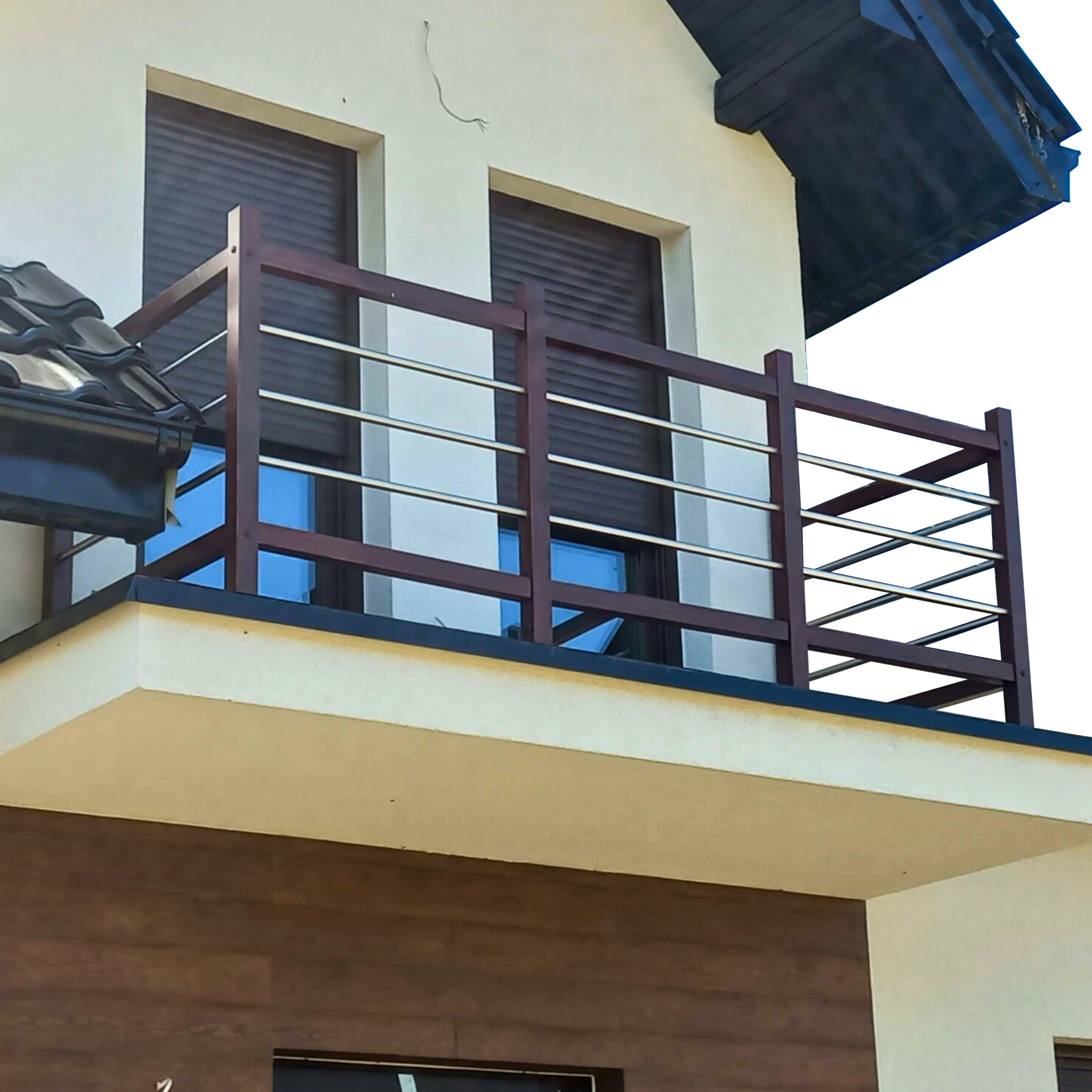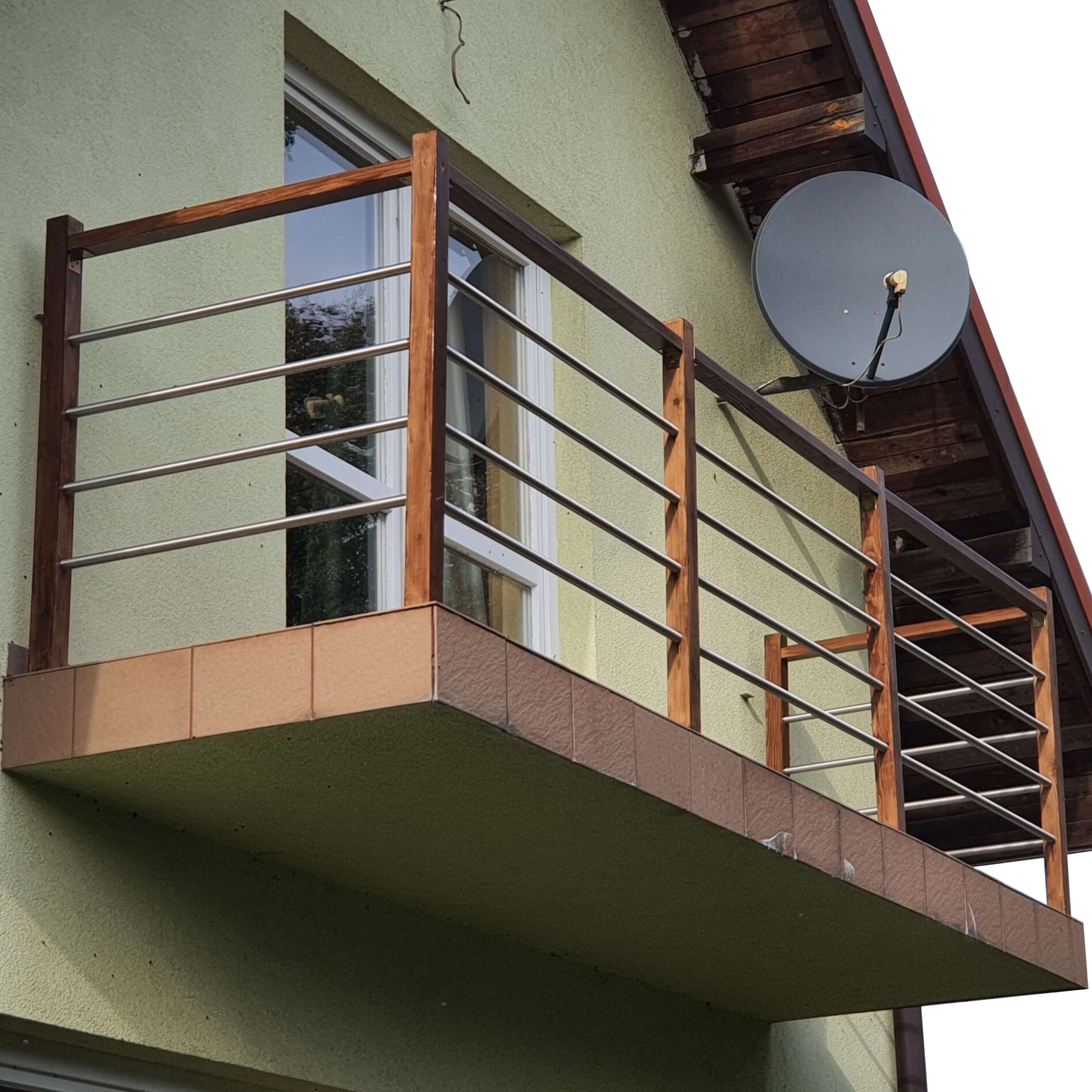 → Balustrada drewniana z rurkami stalowymi do domów jednorodzinnych, altan i obiektów komercyjnych