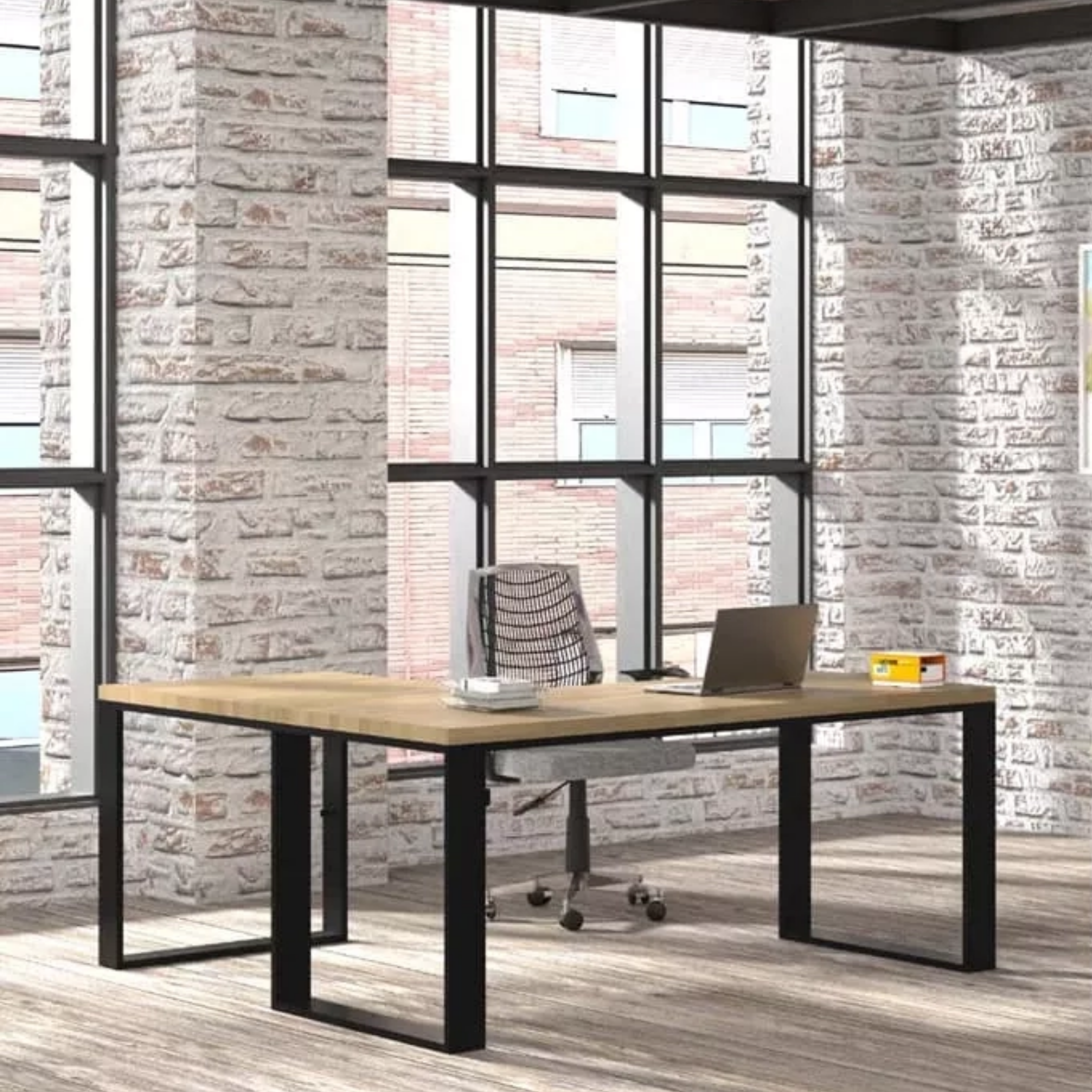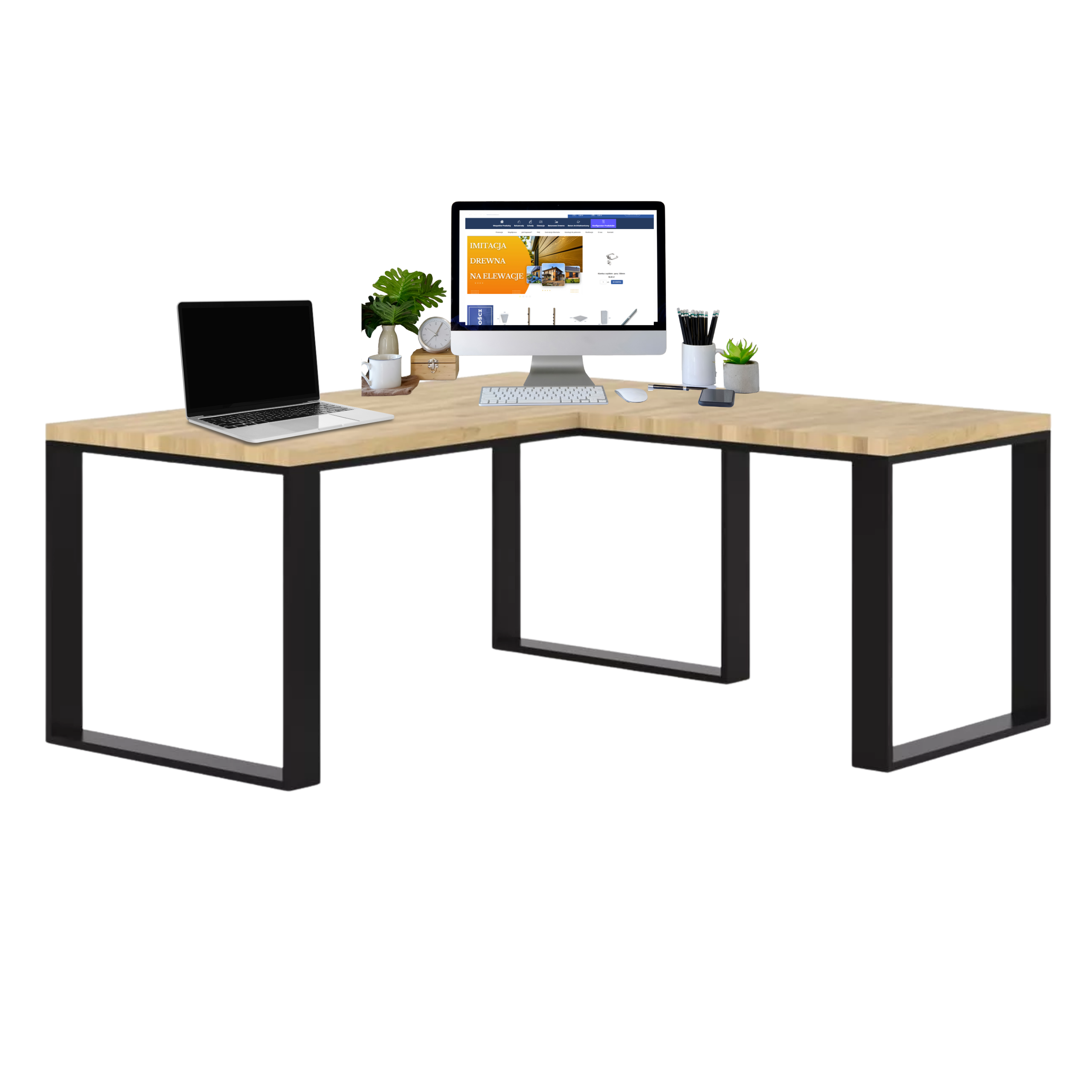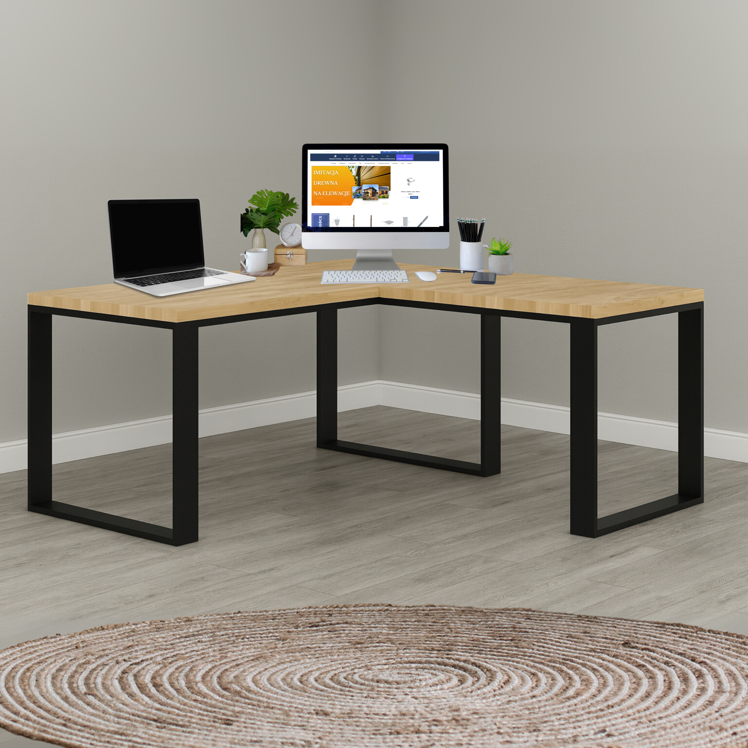 Strona główna » Meble Drewniane » Biurka » Biurko Narożne z Drewna Dębowego Stalowy Stelaż