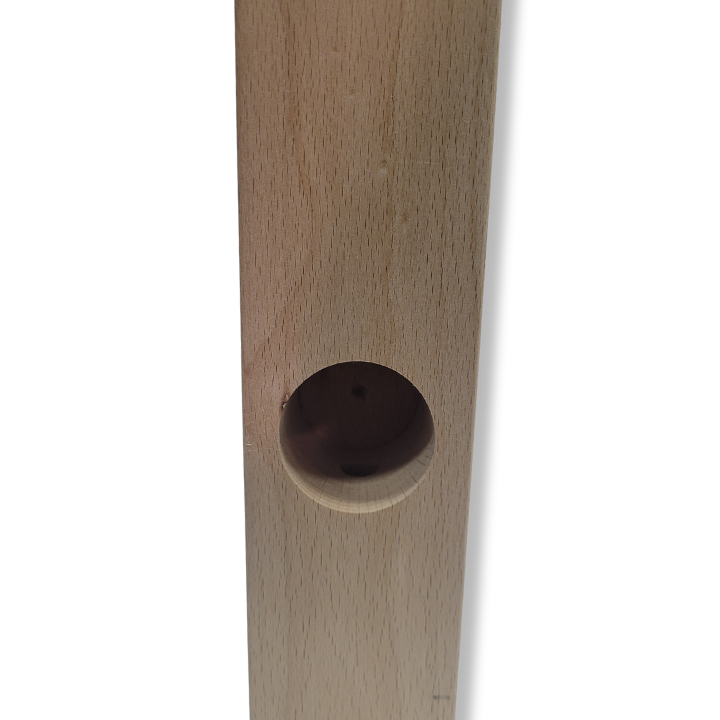 Słupek posiada wywiercony otwór montażowy u podstawy, co ułatwia jego stabilne przytwierdzenie do podłoża lub konstrukcji nośnej.