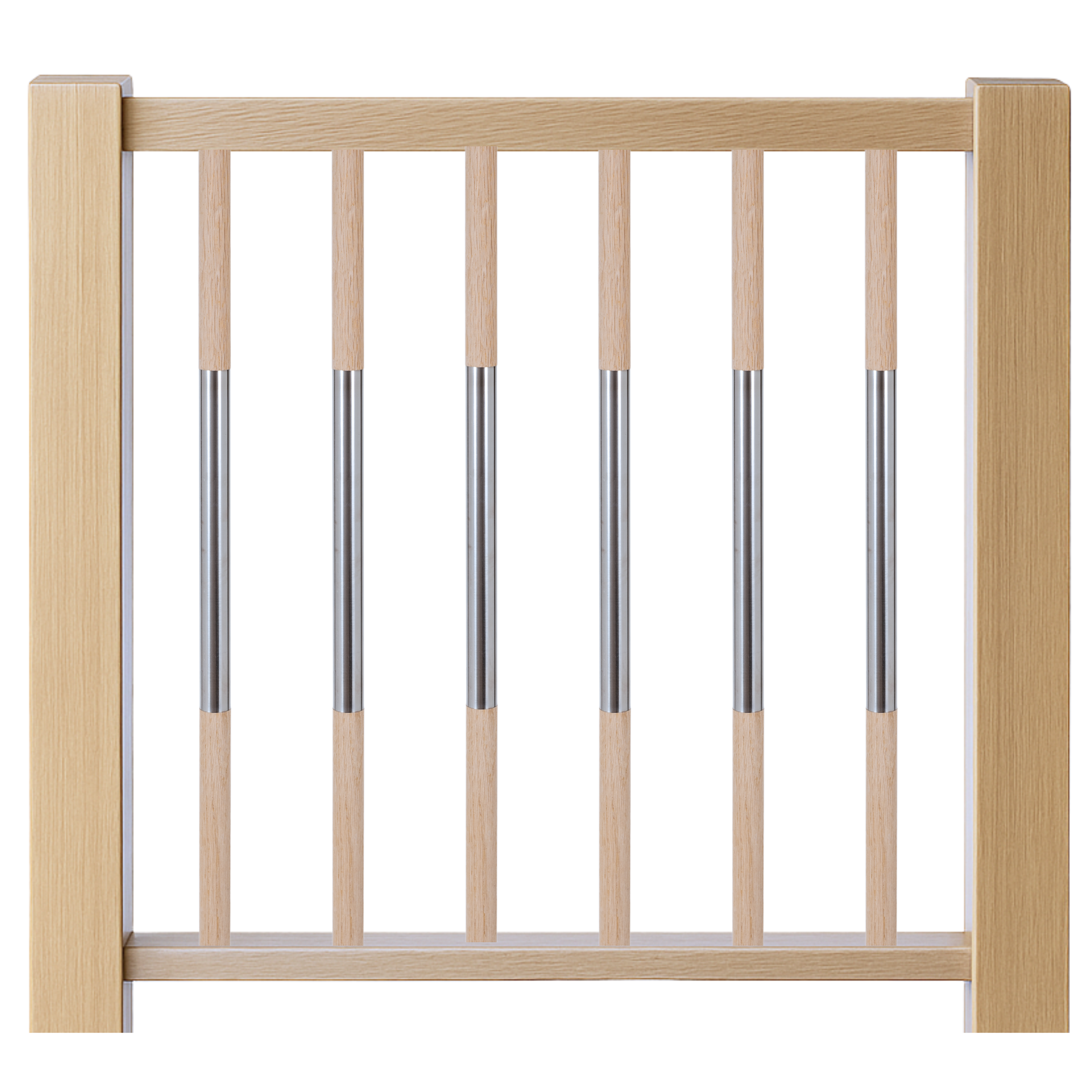 Tralka wykonana z drewna dębowego oraz stali nierdzewnej szlifowanej Ø25 gwarantuje wyjątkową trwałość, odporność na uszkodzenia i estetyczny wygląd przez długie lata.